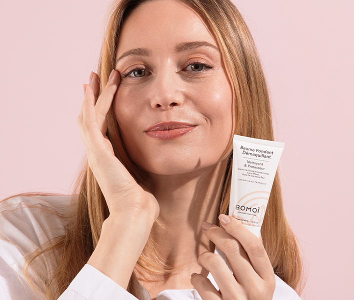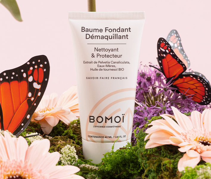 Découvrez en exclusivité le Tout Nouveau Baume Fondant Démaquillant signé BOMOÏ ! Nettoyant et protecteur, ce baume à la texture fondante élimine le maquillage et les impuretés en respectant le film hydrolipidique cutané. Enrichi en extrait de pelvetia et huile de tournesol bio, il laisse une peau propre et parfaitement démaquillée, comme un renouveau printanier.