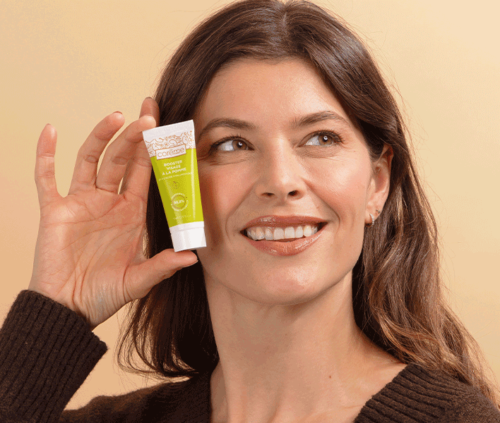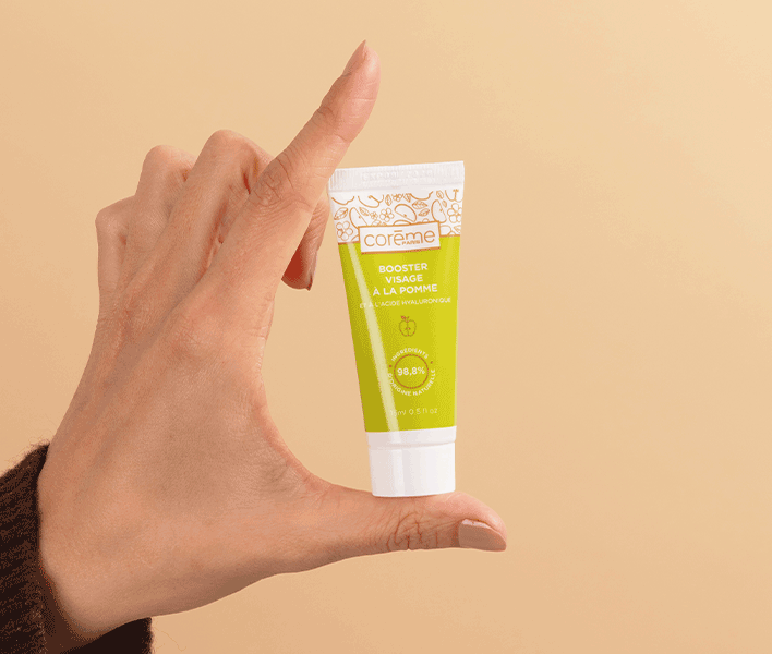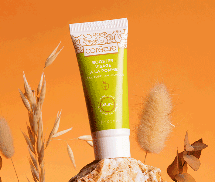 Votre nouveau Booster Visage de CORÈME PARIS, enrichi en acide hyaluronique et en extrait de pomme : Il revitalise la peau, améliore son élasticité et révèle tout son éclat. On est fans !