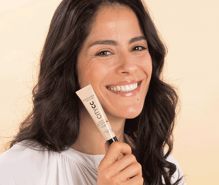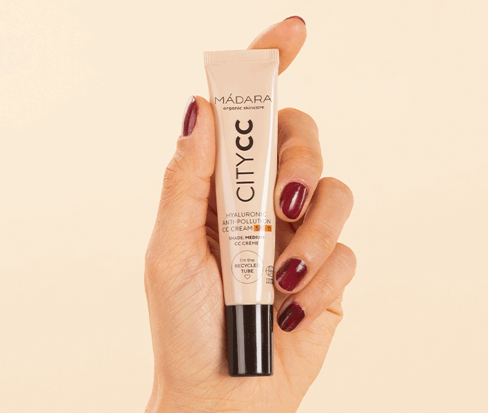Votre nouvelle CC Crème 3-en-1 Anti-Pollution SPF 15 à l’Acide Hyaluronique de MÁDARA corrige les imperfections de toutes les carnations, tout en protégeant contre la pollution urbaine et les UVA/VB. Génial !