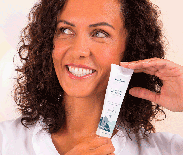 Votre nouvelle Crème Corps Hydratante de SAINBIOZ : Sa texture legère et fondante vous enveloppe d’un voile de douceur. Wahou !