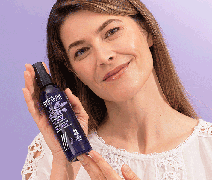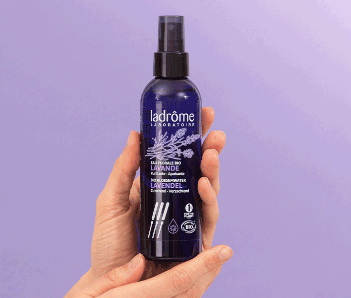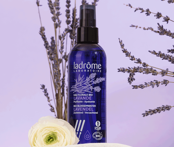 • De lavande bio de Provence, qui apaise, purifie et rafraîchit le teint.