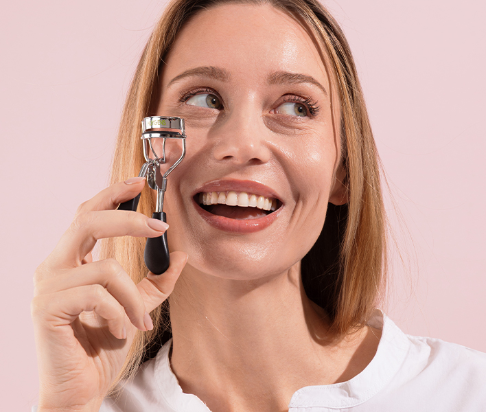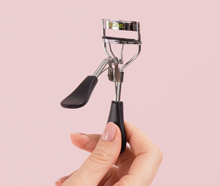 • Étape 1 : Pour des cils majestueux : Placez votre recourbe cils à la base de vos cils propres et secs, et pressez quelques secondes pour une courbure naturelle.