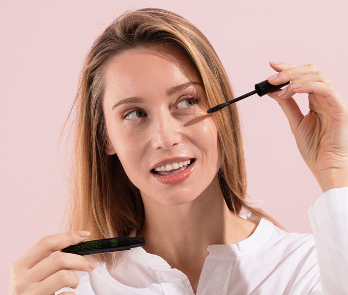 - Étape 1 : Après avoir chouchouté le contour de vos yeux, place à des cils majestueux : Sur vos cils propres, appliquez votre Sérum-Mascara de la racine aux pointes, en effectuant un léger mouvement de zigzag.