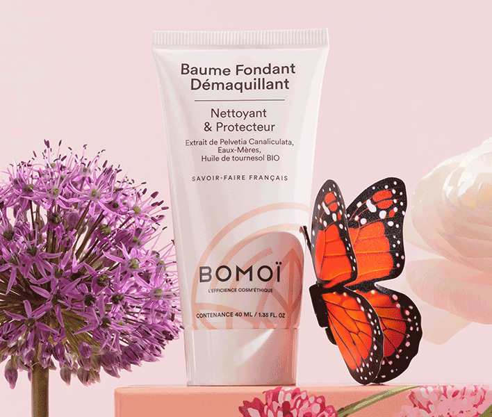 Débutez en beauté votre Nouvelle Routine « Éclosion Radieuse » 100% Innovation avec le Tout Nouveau Baume Fondant Démaquillant signé BOMOÏ ! Nettoyant et protecteur, ce baume à la texture fondante élimine le maquillage et les impuretés en respectant le film hydrolipidique cutané. Enrichi en extrait de pelvetia et huile de tournesol bio, il laisse une peau propre et parfaitement démaquillée, comme un renouveau printanier.