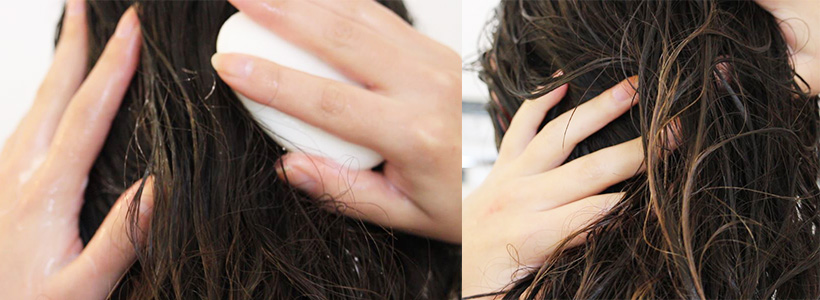 - Étape 2 : Puis, sur cheveux préalablement humidifiés, frottez votre shampoing sur votre tête.
